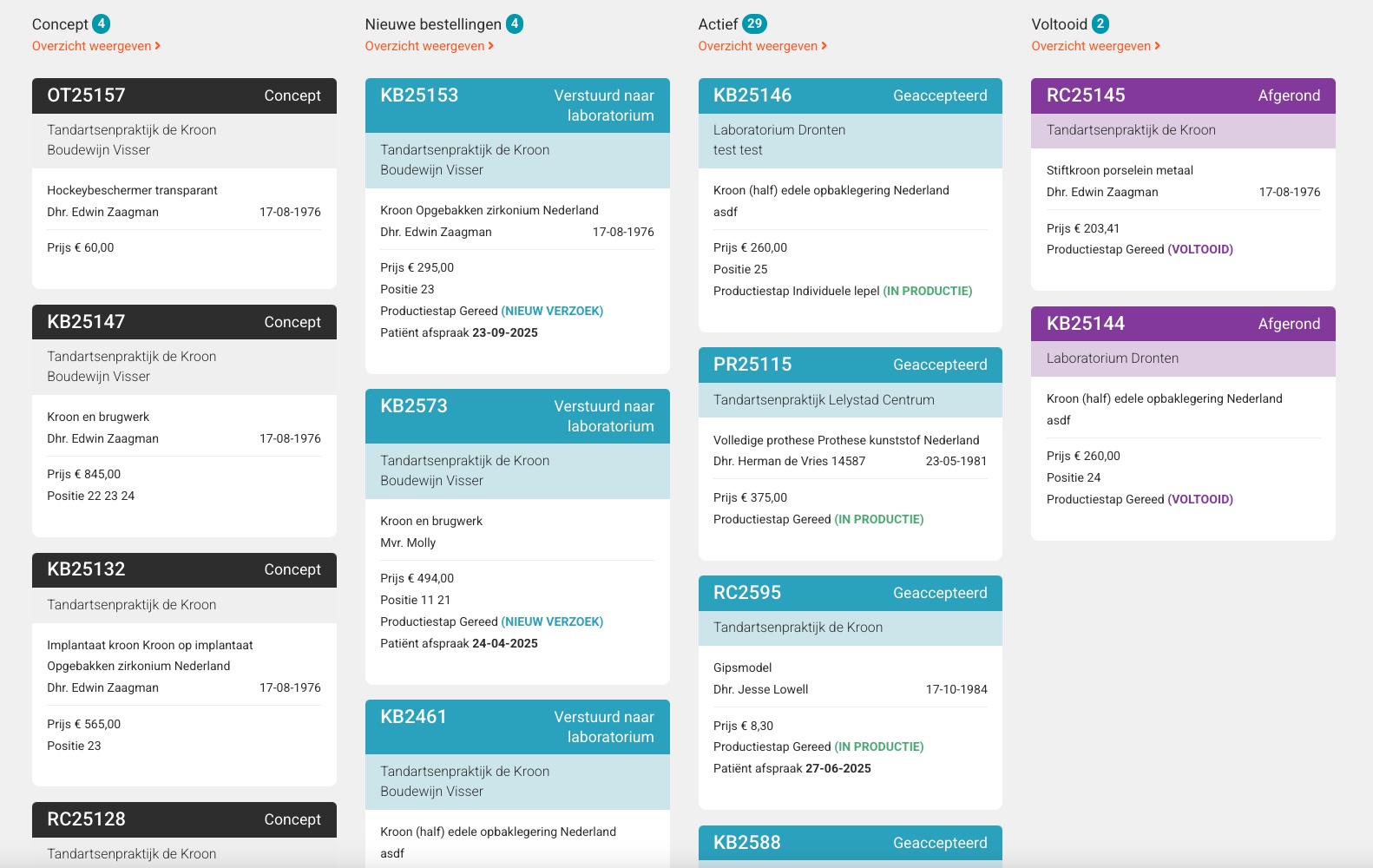Voor tandartspraktijken is Ladento dé plek om bestellingen overzichtelijk te beheren. Met één account heb je altijd toegang tot alle opdrachten, facturen en statusupdates. Zo werk je sneller, overzichtelijker en zonder gedoe.